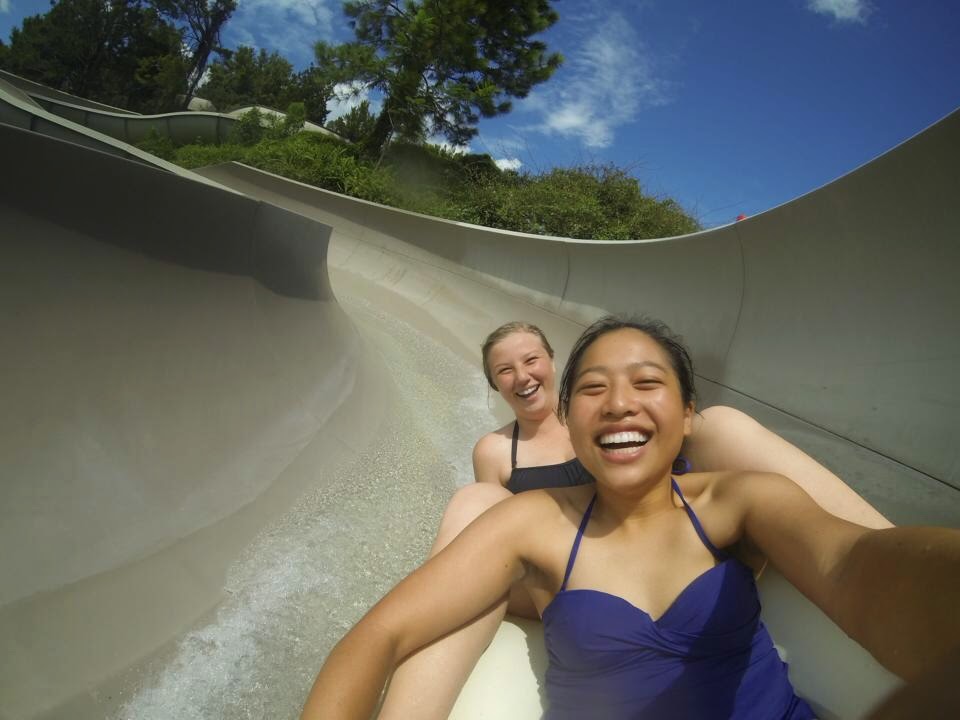 After training one day we decided to go to Blizzard Beach. I have never been to a Disney water park before and I don't love water parks in general, but I thought it would interesting to see. It was actually really fun! It was not very crowded (maybe because we got there around 3) so we got a chance to ride anything and everything we wanted. The lazy river there is huge! And the theming of park was pretty unique and fun. Disney loves to tell stories and the story of this water park is that the park is a ski resort and all the snow is melting so that is where all the water is coming from. Only Shelby was brave enough to do Summit Plummet (the HUGE water slide that is almost a straight drop) but we did get some hilarious photos thanks to Allison! I am so lucky to have her as a roommate because she always gets the best pictures!